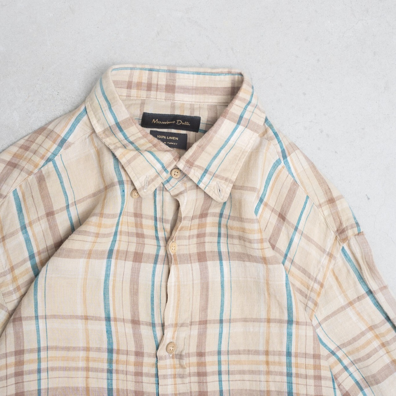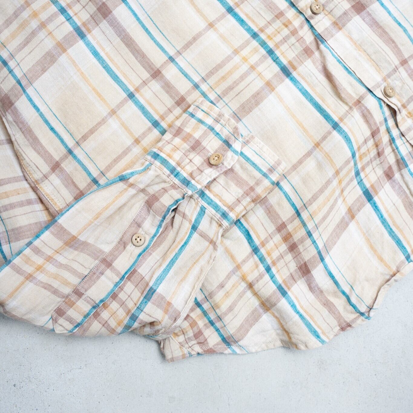 Pure linen light fabric check L/S shirt
