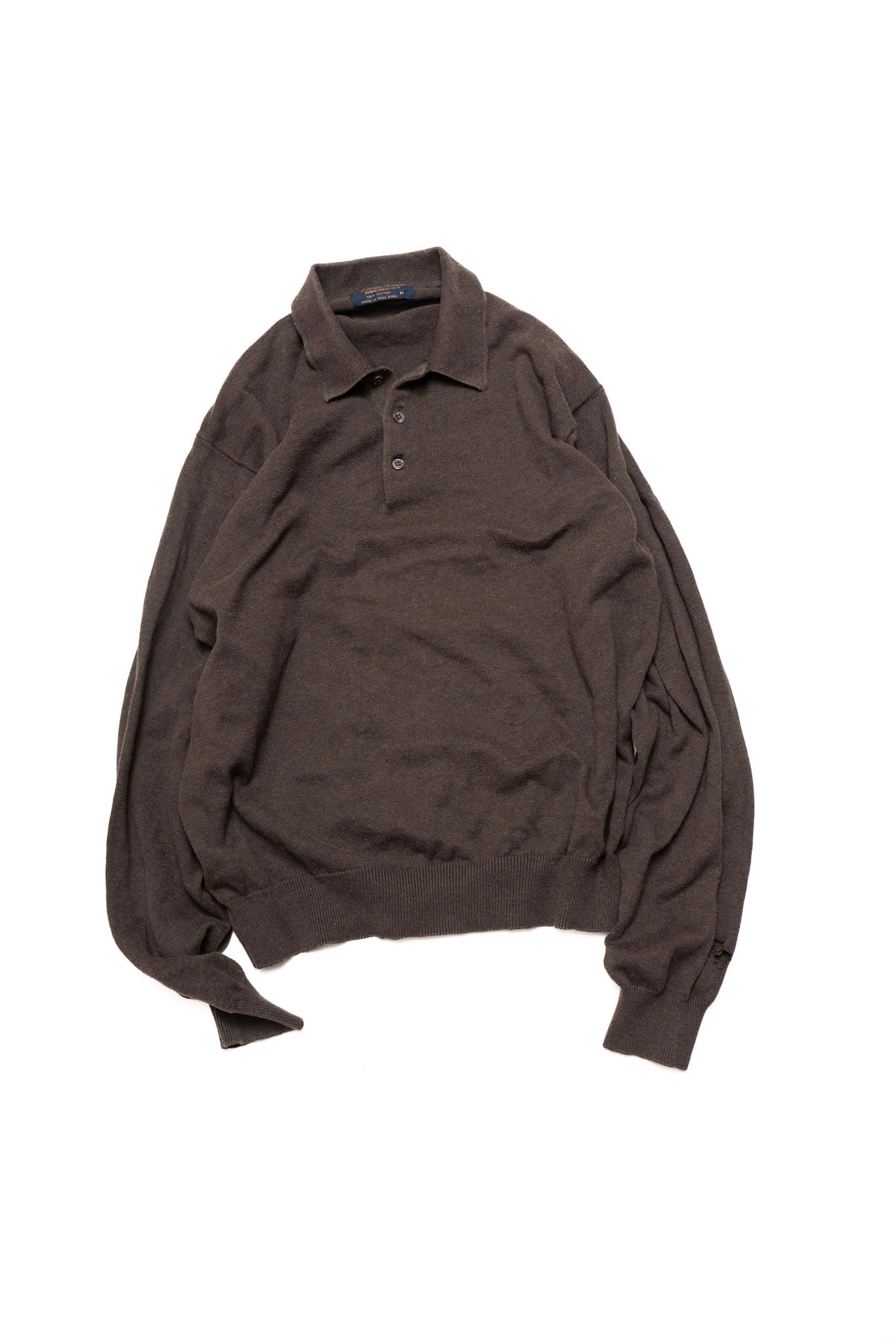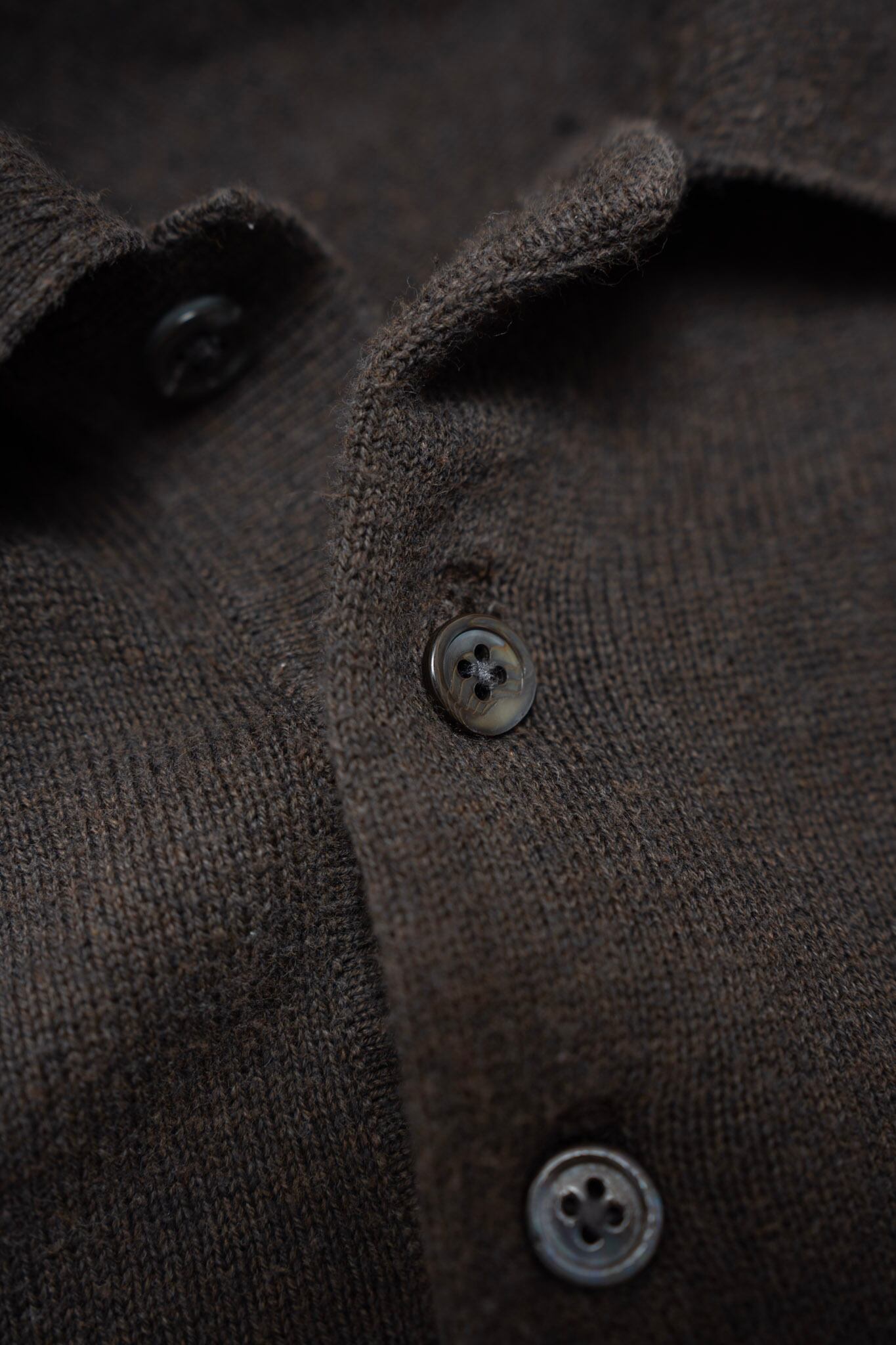 秋の着こなしに大変重宝する、濃茶の長袖ニットポロをご用意いたしました。