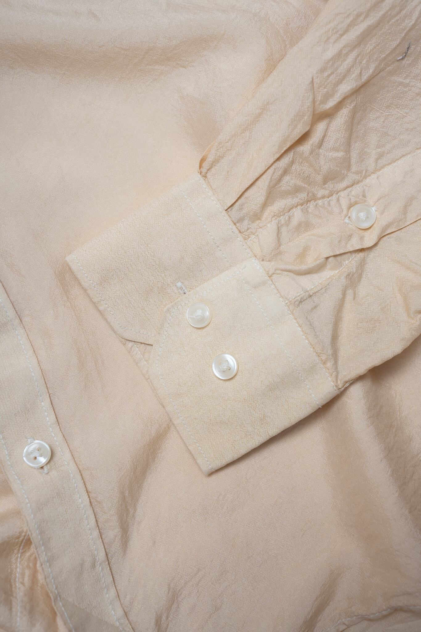 生地の薄さからダメージがありがちなシルクシャツですが、こちらは特に引っ掛かり傷などもなく、良好なコンディションです。