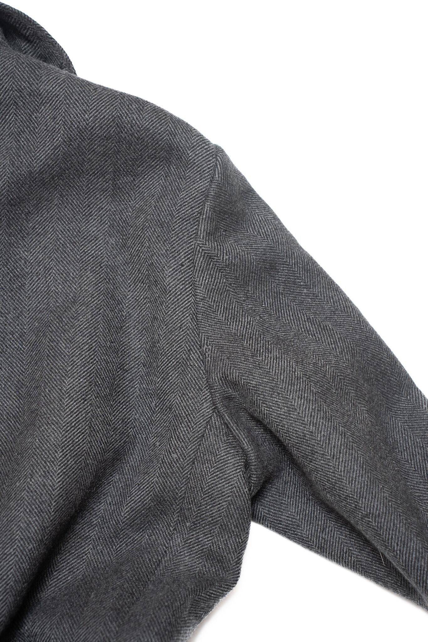ダークグレー、ウール、ロングのヘリンボーン。