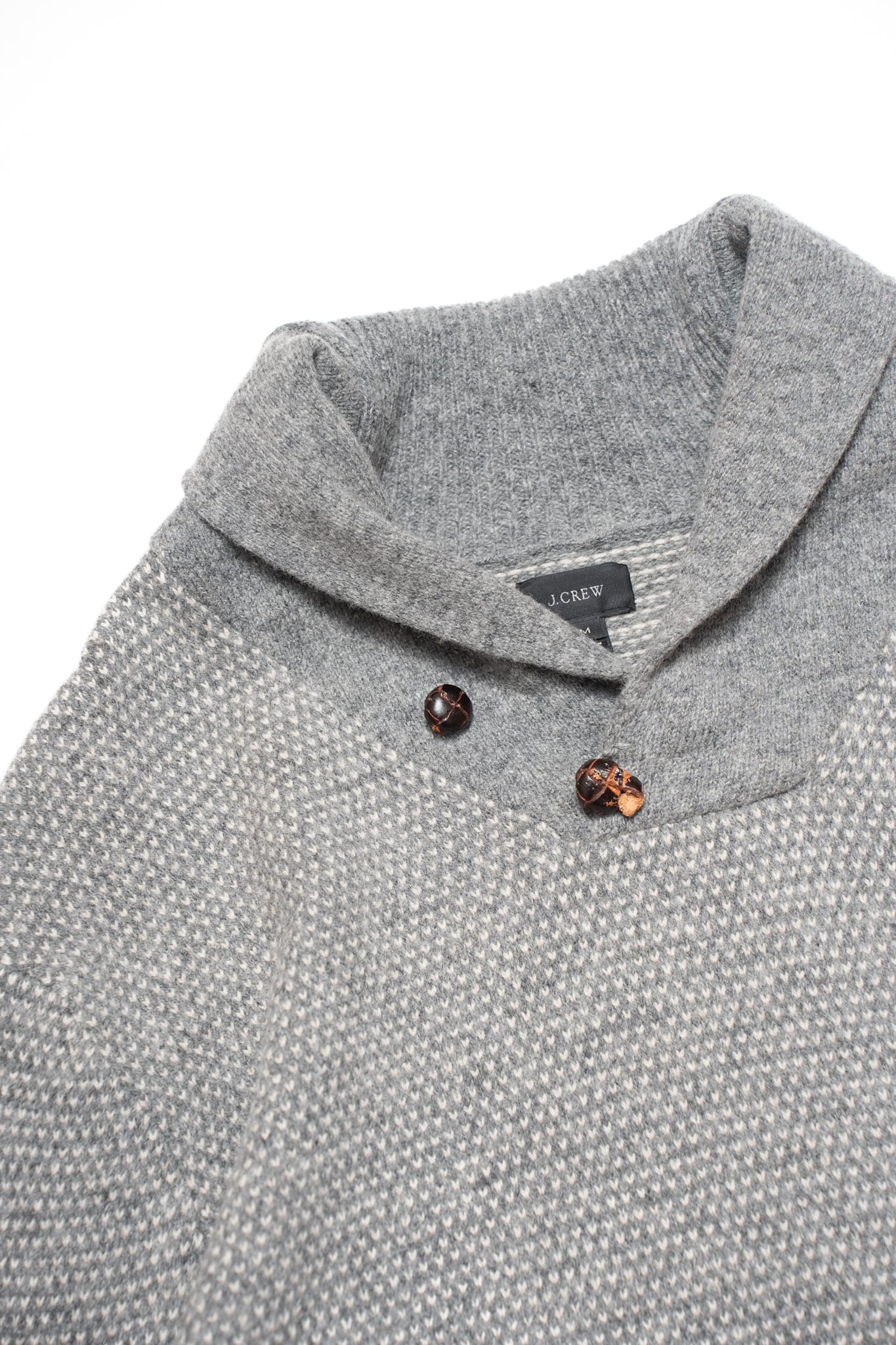 jcrew birds eye design wool shawl collar knit