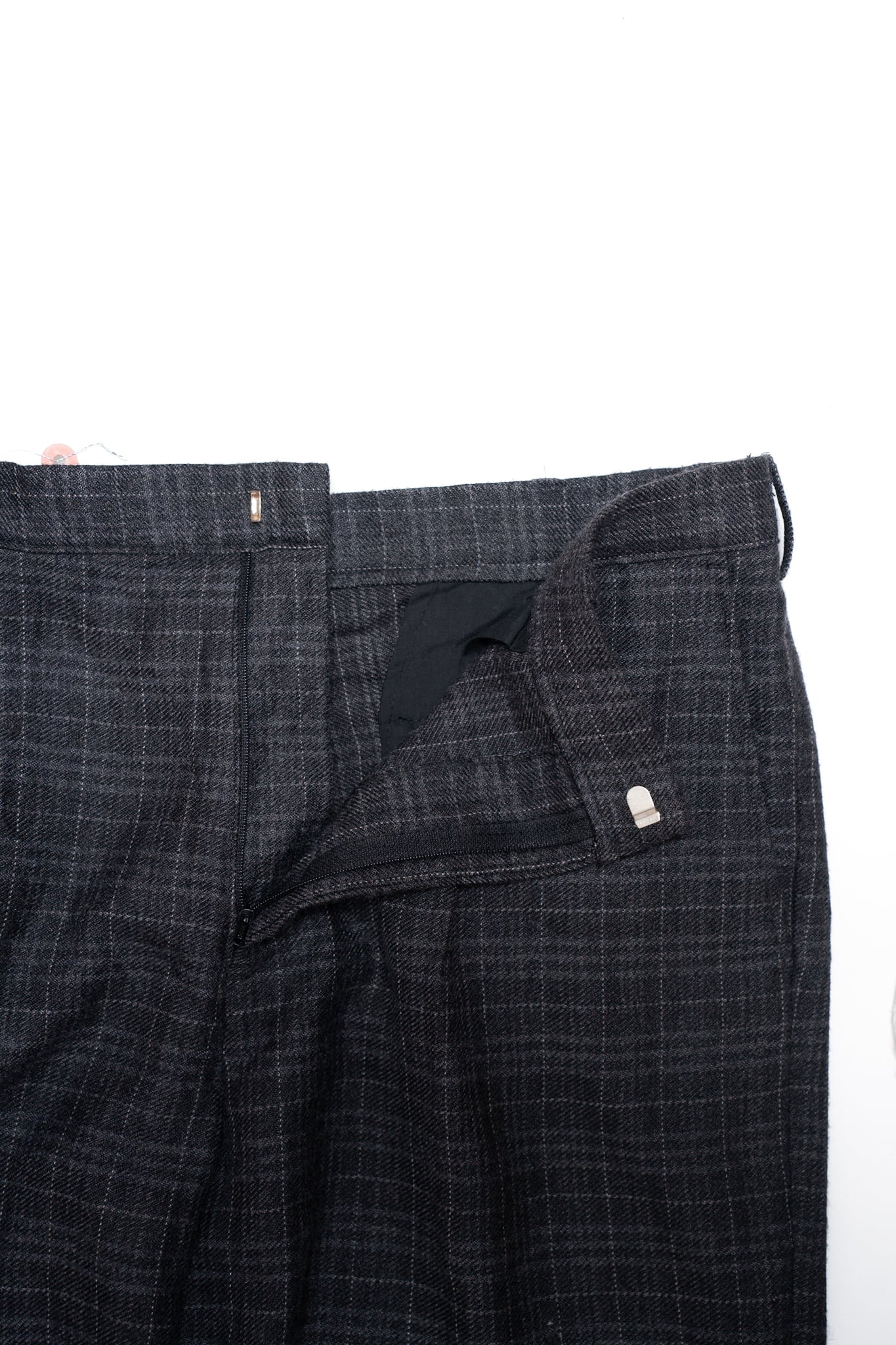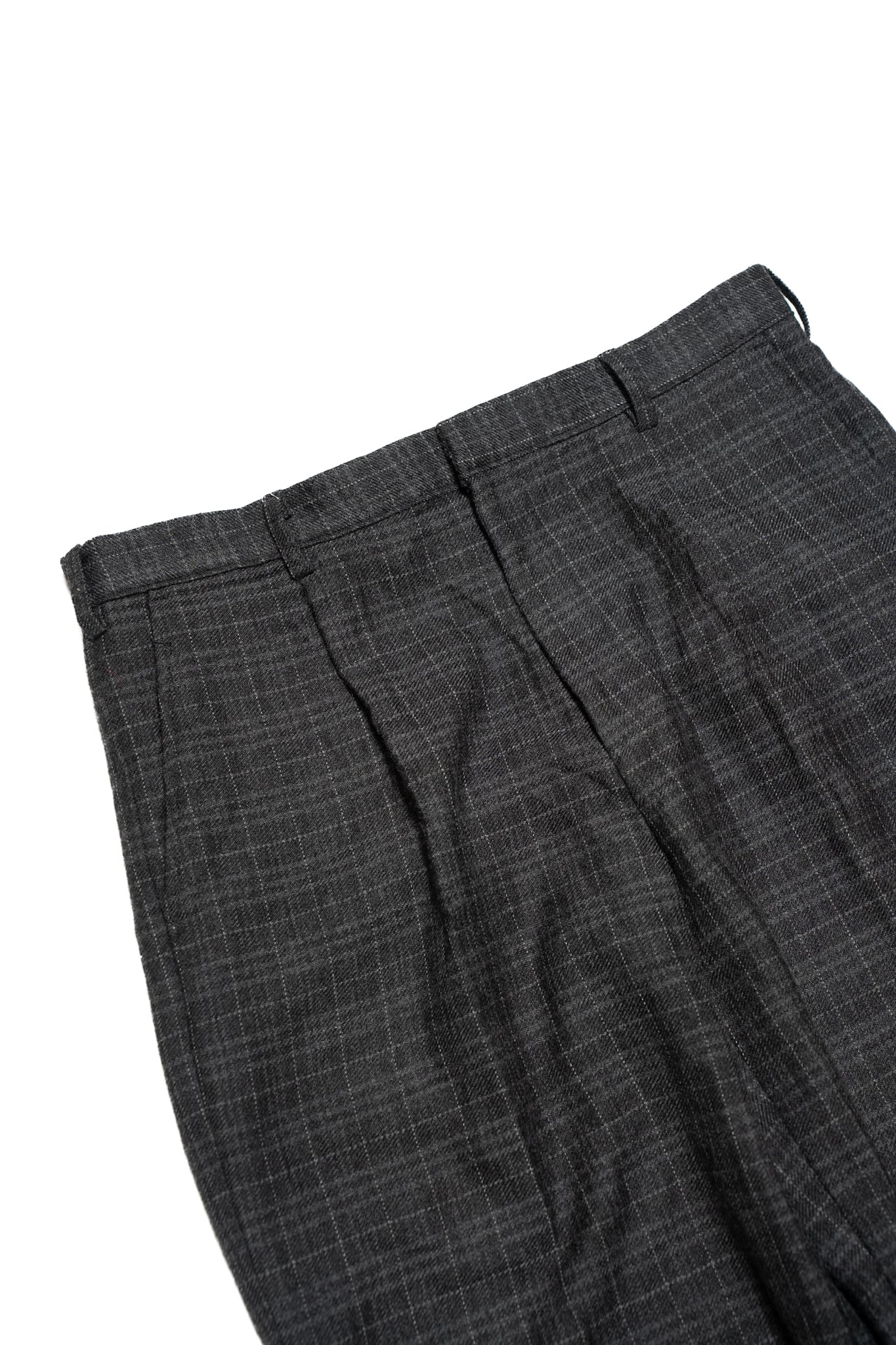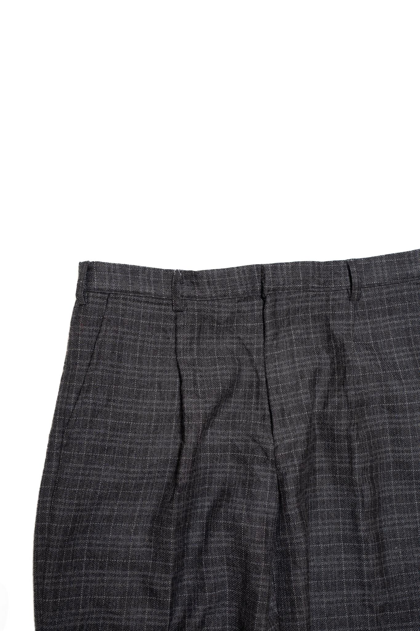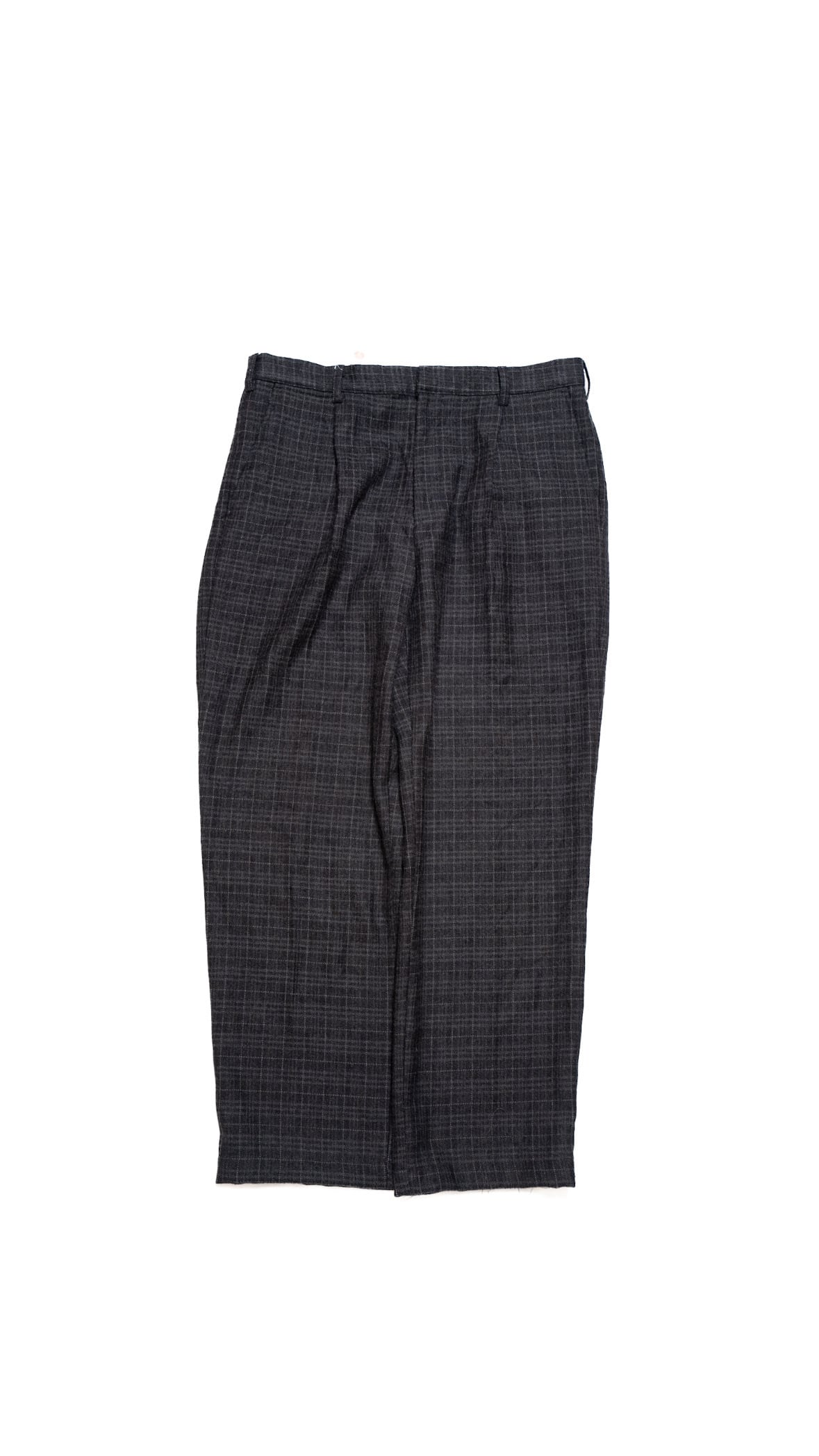 Wool tuck wide check slacks