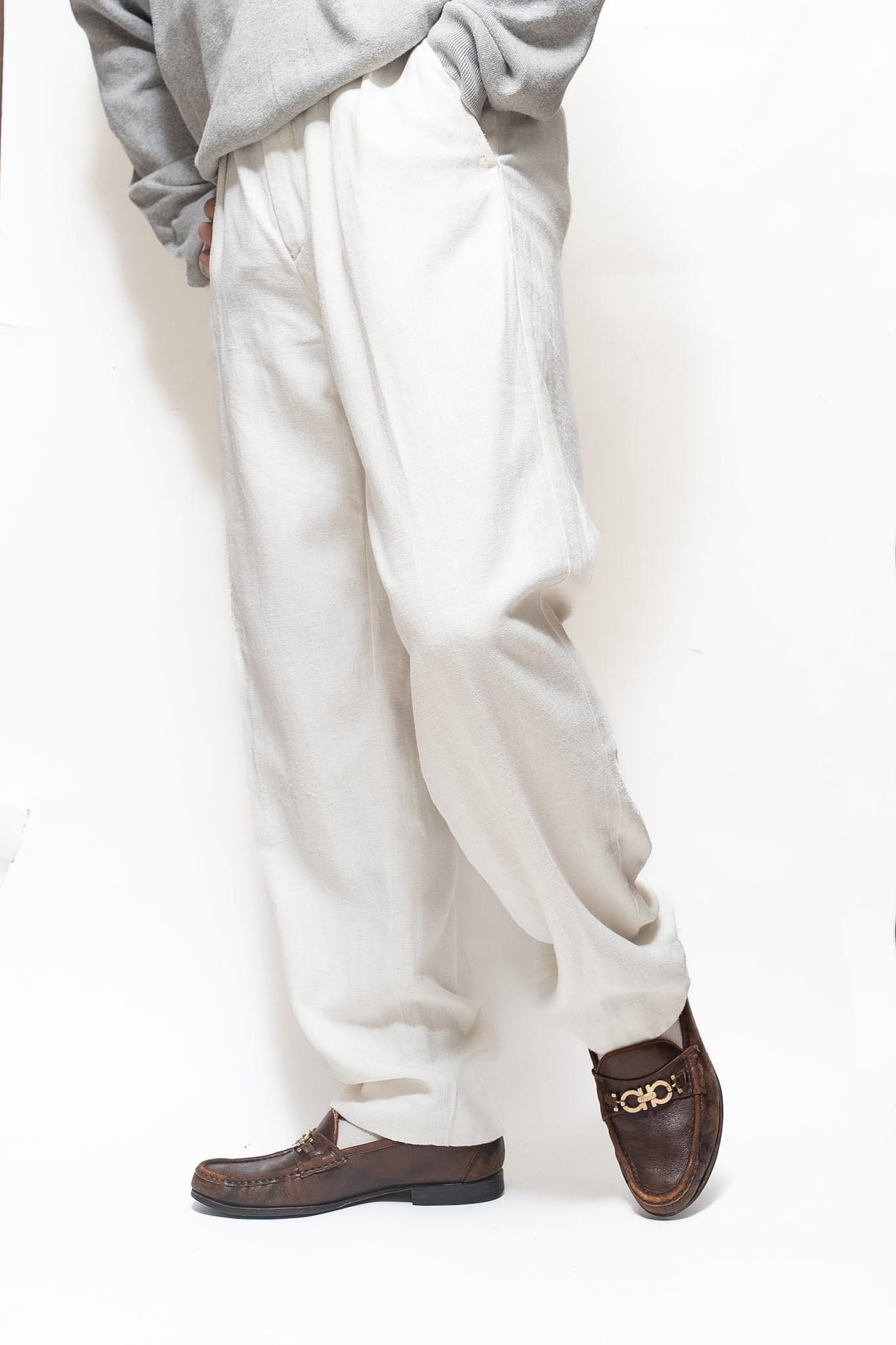 White linen 2tuck wide slacks