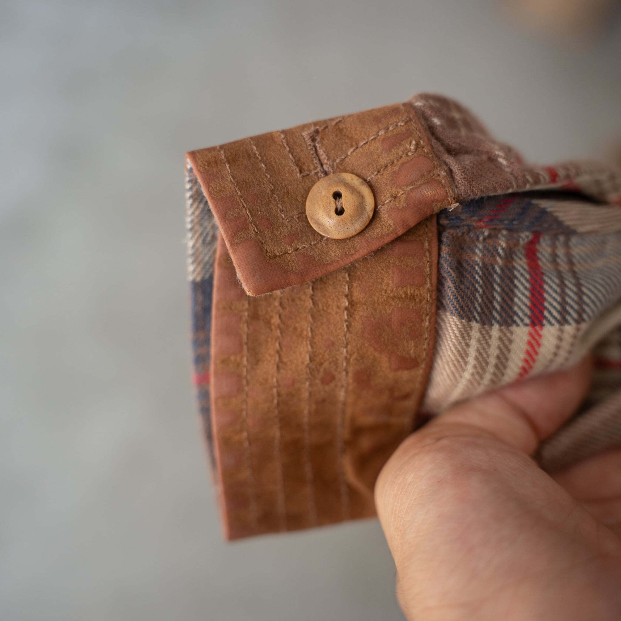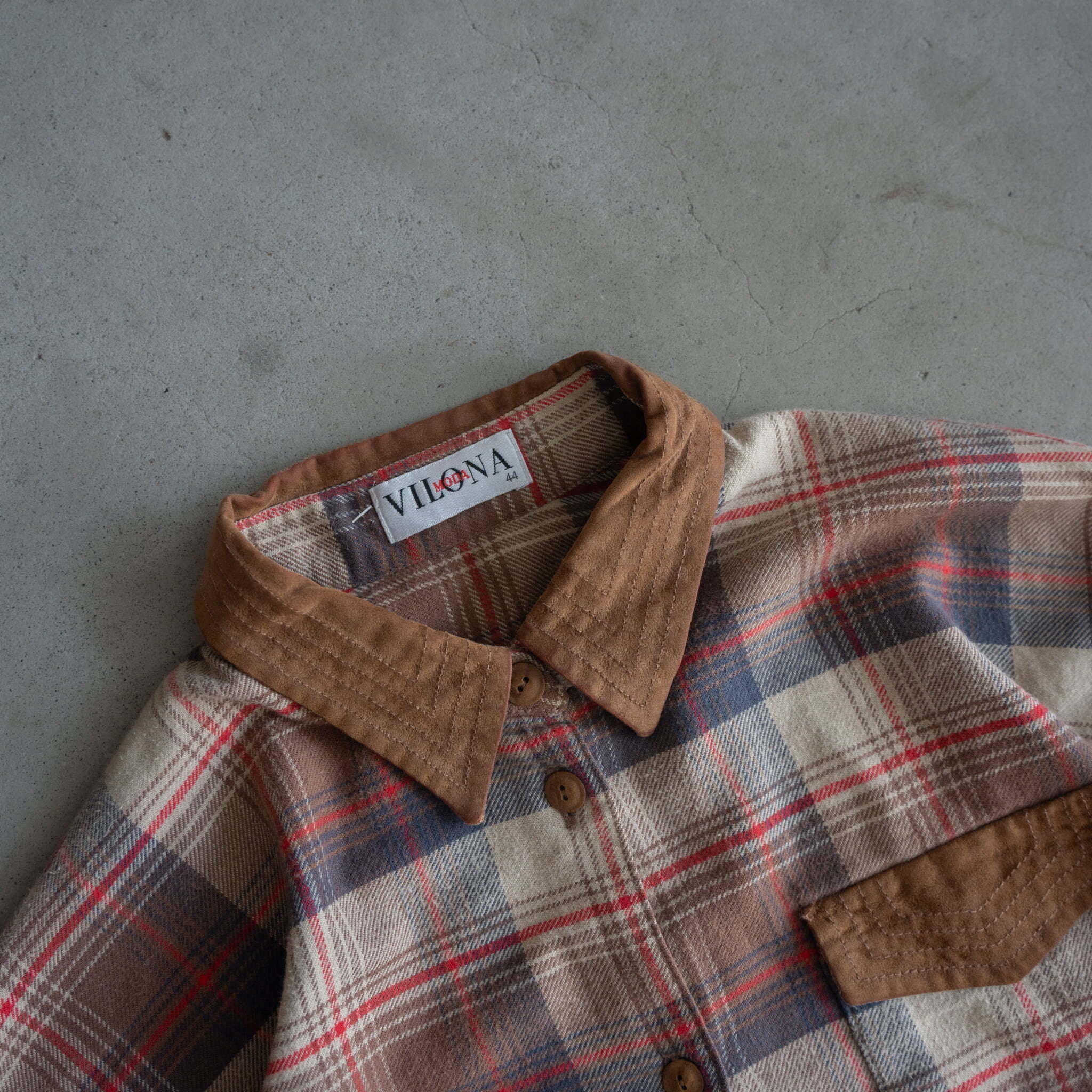 Cotton×Suede Check design L/S Euro shirt