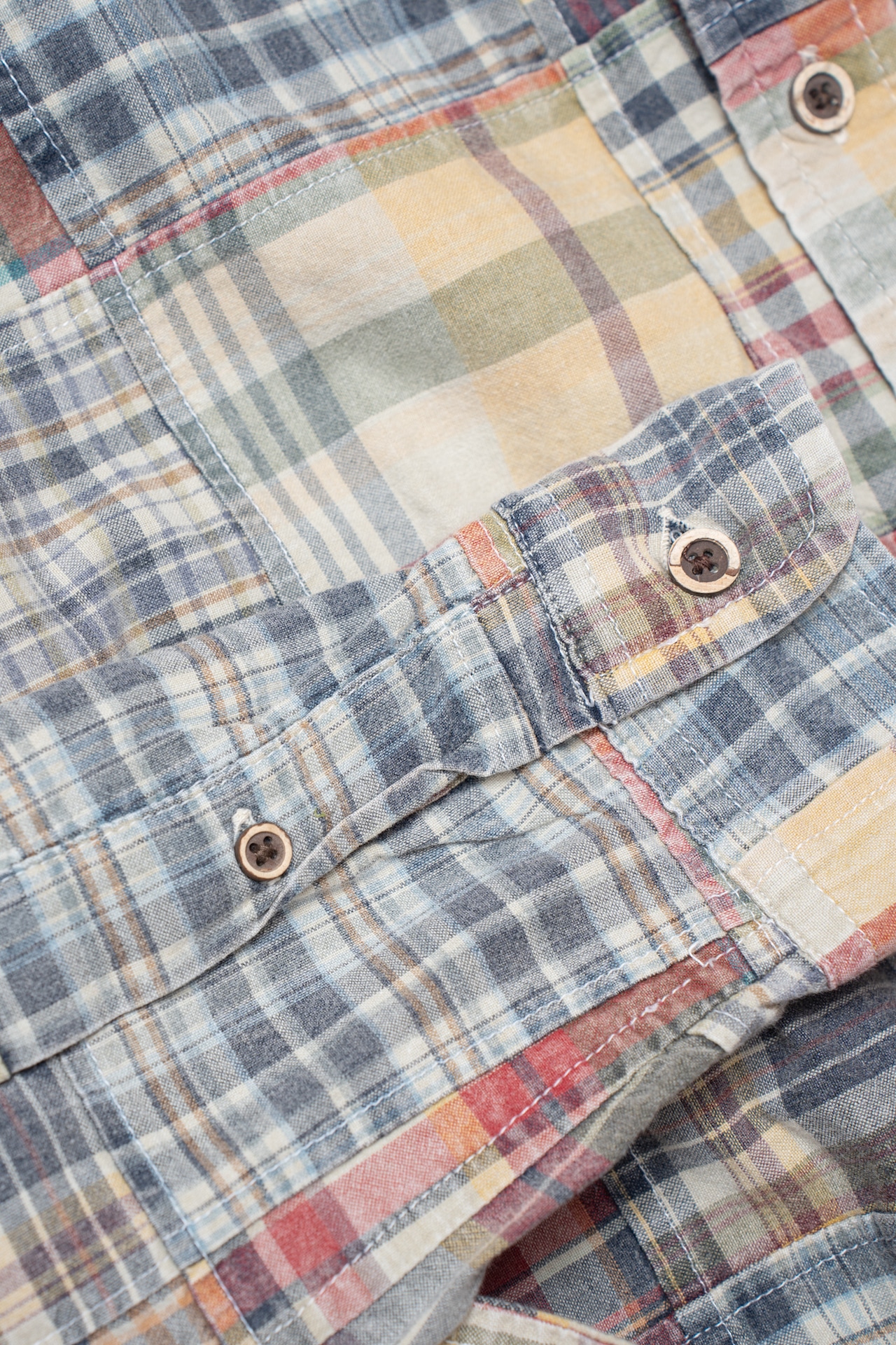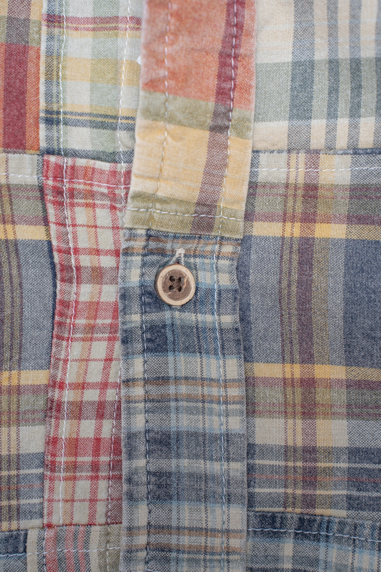 フェード風のカラーリングで使いやすい、マドラスシャツをご用意いたしました。